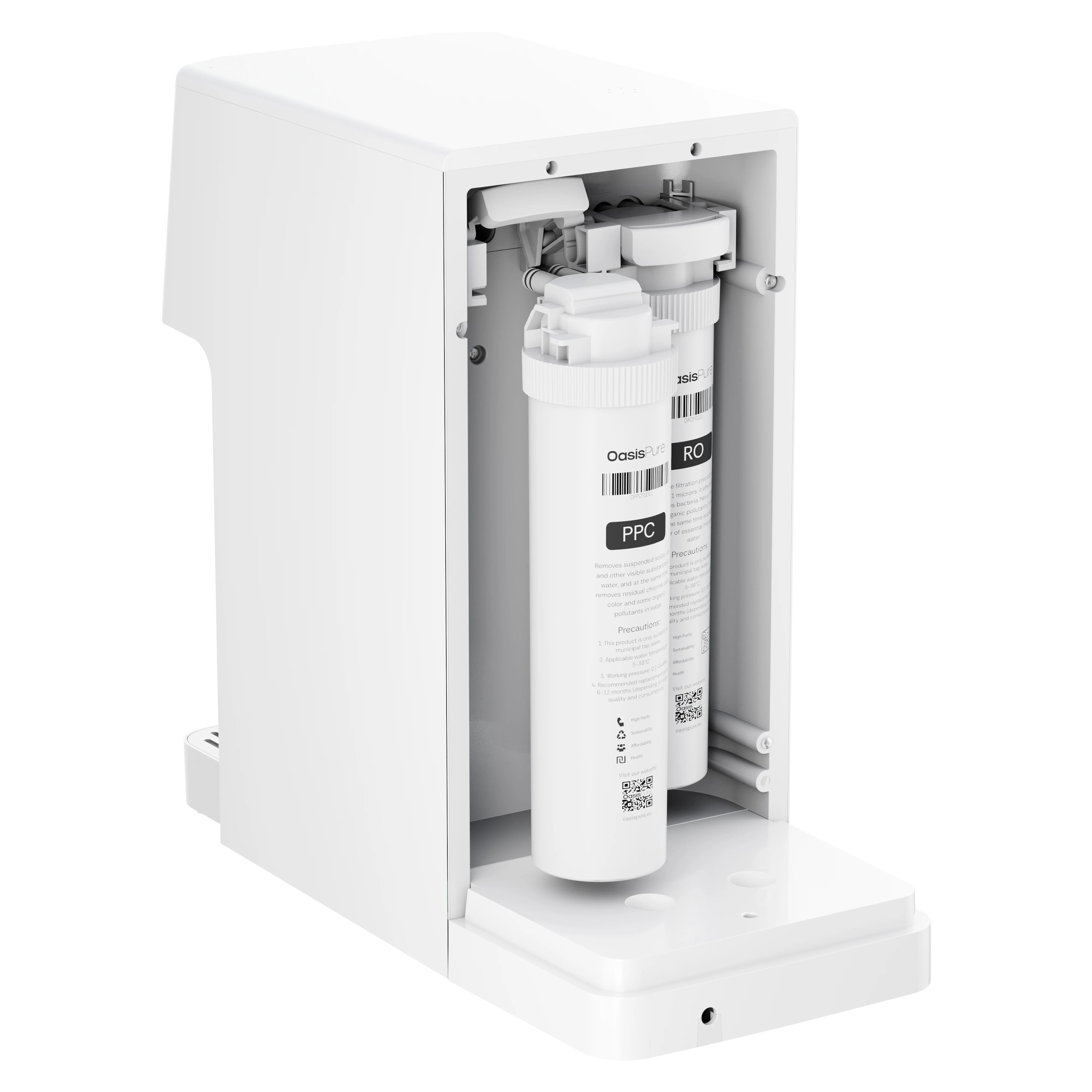 Das fortschrittliche Filtersystem von OasisPure liefert reines und sicheres Wasser durch einen sechsstufigen Umkehrosmose-Prozess. Mit Doppelkartuschen und UV-Sterilisation entfernt es effektiv Verunreinigungen und stellt sicher, dass jeder Schluck die höchsten Qualitätsstandards erfüllt.